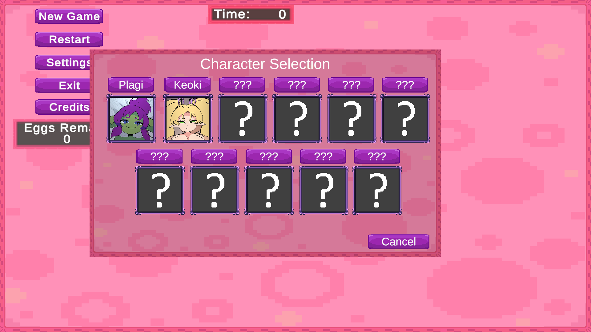 As this game is in early development, only two characters have been implemented, but a total of 11 are planned!